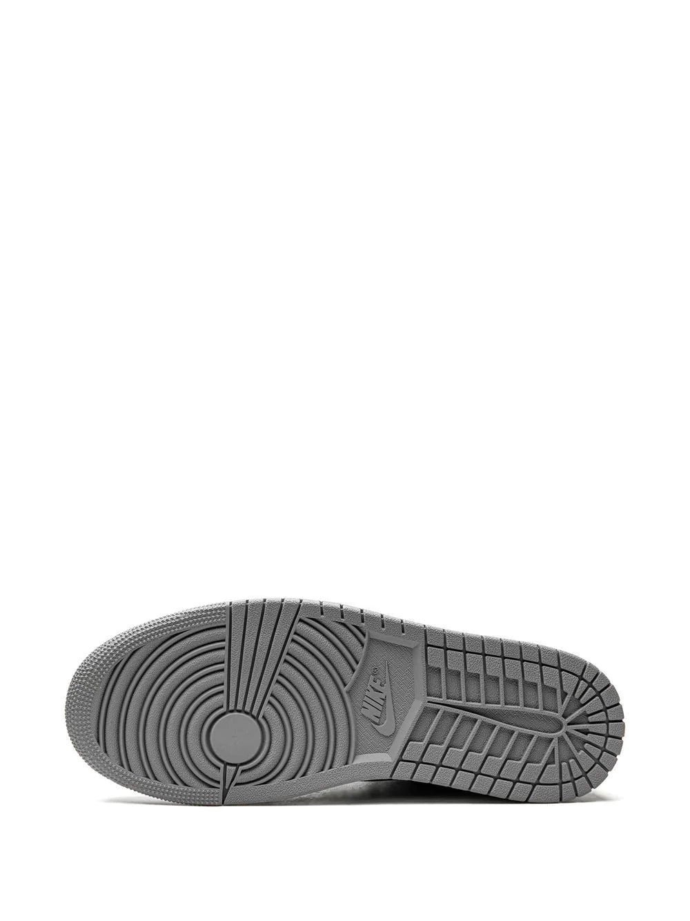 Black/grey/white leather Air Jordan 1 High OG “Rebellionaire” sneakers from jordan featuring signature Air Jordan Wings logo, signature Swoosh logo detail, logo patch at the tongue, slogan print, contrasting panel detail, round toe, front lace-up fastening, ankle-length, branded insole and rubber sole. These styles are supplied by a premium sneaker marketplace. Stocking only the most sought-after footwear, they source and curate some of the most hard to find sneakers from around the world..