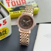 Black satin dial, chronograph movement and full Golden metal strap.