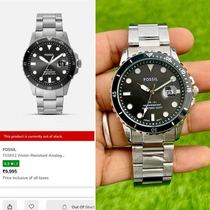 *_FOSSIL MEN’S SILVER-TONED ANALOGUE WATCH BLACK DAIL STAINLESS STEEL ⌚️ FS5652_*