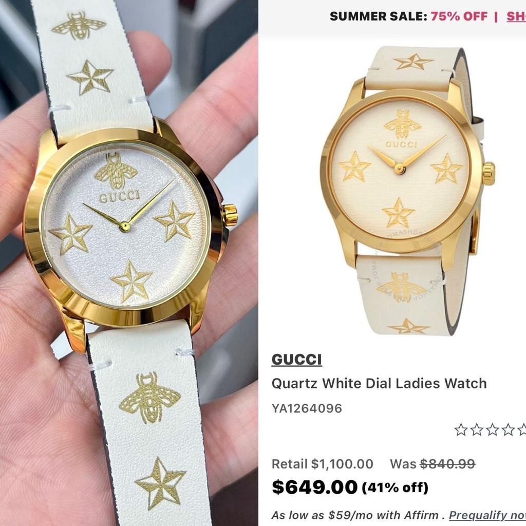 – Attractive Dial with White & Gold Colour Combination along with Gucci Bee & Star Motif Engraved