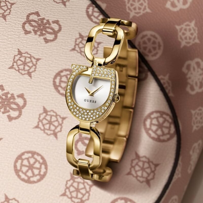 ✅ *_A new sleek jewelry logo look featuring an innovative G-shaped glitzed out case on a fresh new chain bracelet. Adjustable G-links make this style easy to size and pairs well with other jewelry._*✅